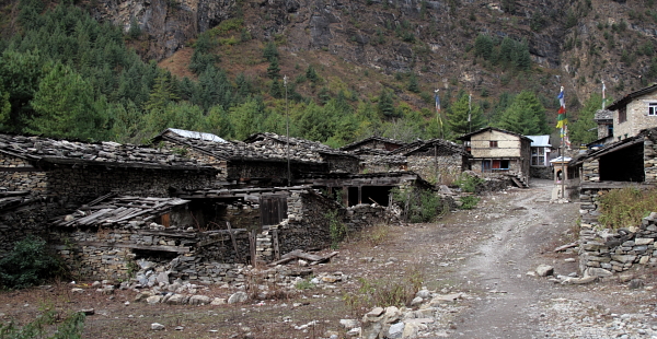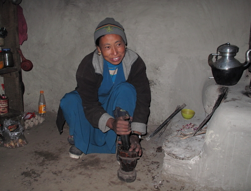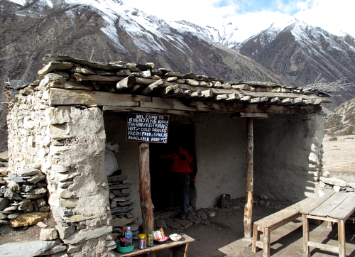 Later that night I crawl into my down bag after realizing I will be sleeping on a platform of stacked rocks; largely flat, but hard and granite cold. The 3 inches of ancient, filthy compressed foam make little difference. I replay the question over and over trying to decipher: “Maybe you are supposed to leave something in these mountains….”. I turn on my headlamp, write the new question in my journal and recognize I must indeed be suffering from a lack of oxygen, that my mind has finally, at 46 years, gone….completely. Find something – leave something. I begin to cough again and notice through my lamp beam that my closet (5.75 x 2.75 x 5ft ) is completely filled with Yak shit smoke from the mis-directed flue of the dining hall stove. “Great: yak smoke, rock bed, flat mattress, shitty food, and stupid questions followed by even more stupid questions”. sleep comes slowly and is fitful.